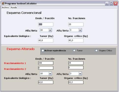 IsodoseCalculator representa una herramienta de cálculo diseñada para comparar esquemas de tratamientos equivalentes en términos de la dosis requerida para el control tumoral o la incidencia de complicaciones en tejidos sanos. El programa utiliza el modelo lineal-cuadrático de dosis - respuesta, sin contemplar la tasa de replobación, efectos de rebote y modificadores de la respuesta tales como la oxigenación, agentes químicos concomitantes, la tasa de dosis, interrupciones de tratamientos, etc. Debido a estas limitaciones, los resultados deben ser aceptados con precaución y bajo criterios clínicos apropiados.